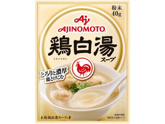 鶏肉と鶏がらを長時間じっくりと炊き込み、鶏本来のうま味を最大限に引き出した、本格鶏白湯スープの素です。鶏白湯のおいしさをさらさらの粉末にギュッと閉じ込めているので、お湯に溶くだけで、とろりと白濁した本格的な鶏白湯スープはもちろん、サムゲタン、ラーメン、水炊き、雑炊など鶏白湯ならではのメニューが簡単手軽においしく作れ、料理のレパートリーが広がります。
