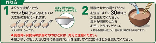また、製法においては、当社独自のおいしさ設計技術(R)を活用し、味噌汁のおいしさをしっかり感じられる味わいで、かつ溶解性技術によりお湯に溶けやすく仕上げています。