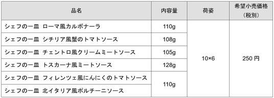 エスビー食品株式会社は、イタリア各地の料理に精通するシェフ監修の味わいが楽しめる「シェフの一皿」シリーズから、「ローマ風カルボナーラ」「シチリア風蟹のトマトソース」「チェントロ風クリームミートソース」を新発売し、「トスカーナ風ミートソース」「フィレンツェ風にんにくのトマトソース」「北イタリア風ポルチーニソース」をリフレッシュします。