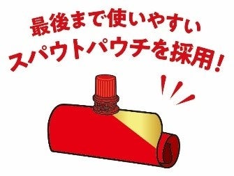 「スパウトパウチ」は使い切りやすい容量で、液だれしにくく、最後まで絞り出しやすい形状のパウチです。冷蔵庫内で省スペース保存ができ、コンパクトに捨てることができるところも便利なポイントです。