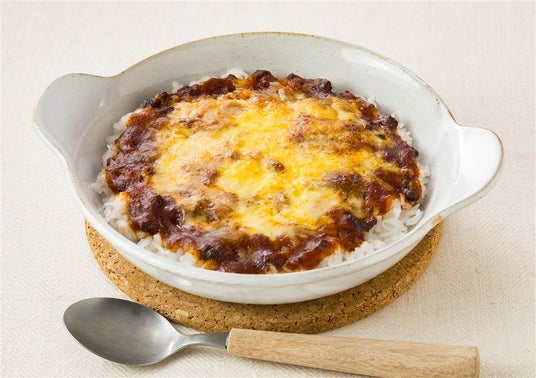 ミートソースとチーズをごはんにかけて焼くだけで、簡単にできるメニューです。ミートソースのコクと、とろけるチーズの風味が重なり合い、ランチにもぴったりの一品に仕上がります。