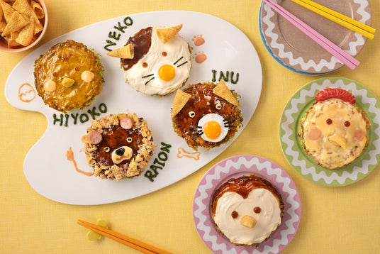「オタフクソース」とコラボ とんがりコーンお好み焼き(オコアート)マヨネーズやとんがりコーン、色鮮やかな野菜などを使って、お好み焼きにデコレーションする"オコアート”。自分なりの工夫ができ、見た目も味も楽しめる一品です。