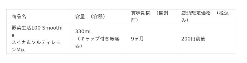 カゴメ株式会社(社長:山口聡、本社:愛知県名古屋市)は、季節限定の「野菜生活100 Smoothieスイカ&ソルティレモンMix」を2025年7月1日(火)から9月中旬まで期間限定にて全国で発売いたします(在庫がなくなり次第、販売終了)。