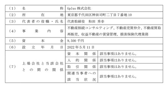 なお、本件は東京証券取引所が定める「子会社等の異動を伴う株式又は持分の譲渡又は取得その他の子会社の異動を伴う事項」にかかる適時開示軽微基準の範囲内であり、任意で開示するものであることから、一部事項について記載を省略しております。