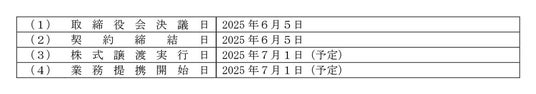 (注)取得価額は、相手先との守秘義務により、開示は差し控えさせていただきますが、公平性・妥性を確保するため、外部機関が実施した財務・税務・法務・労務デューディリジェンスの結果を勘案し、決定しております。なお、取得価額はユカリアの直近事業年度(2024 年12月期)の末日における連結純資産の2%相当であります。