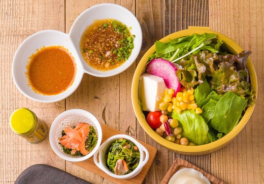 5.鮮やかなサラダと小鉢がついてよりフォトジェニックに!