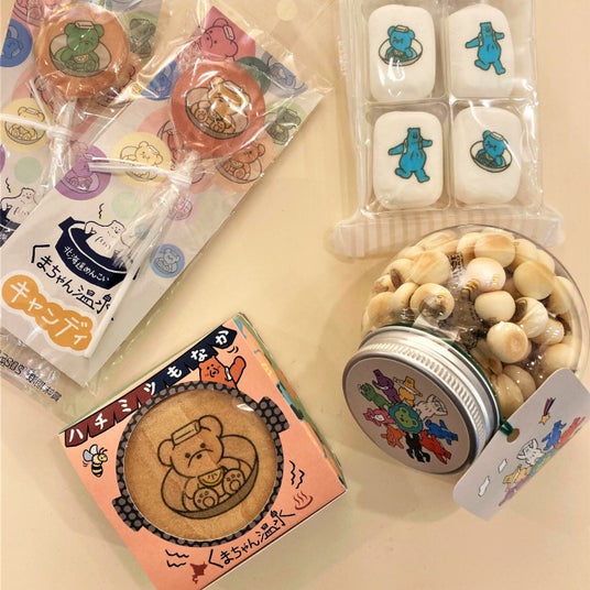 お鍋やお食事をひとしきり楽しんだあとは、お土産タイムです。“クマの国”の旅の終わりに、お土産を買って名残惜しい気持ちを楽しかった思い出に。くまちゃんのマークが入ったキャンディや最中、マシュマロなど、種類も豊富です。