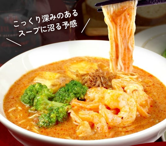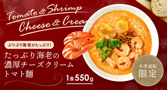 「太陽のトマト麺」は、トマトの酸味と旨味を凝縮したコク深いスープで人気のトマトラーメン専門店です。この冬、公式オンラインショップから、『たっぷり海老の濃厚チーズクリームトマト麺』が誕生しました。