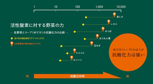 サラダよりスープ(野菜のゆで汁)は抗酸化力が10~100倍も強い