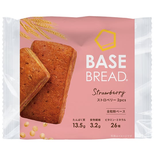 「かんたん・おいしい・からだにいい」をコンセプトに、1食(2袋)で1日に必要な33種類の栄養素がとれる「BASE BREAD」シリーズ。今回新たにラインナップに加わるのは、あまおう苺を使用したほのかな甘みともっちりしっとり生地が特徴のスティックパン「BASE BREAD ストロベリー」です。