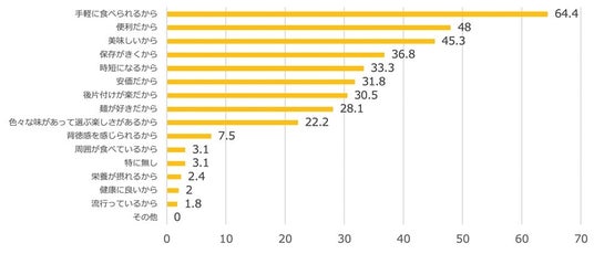 (64.4%)」「便利だから(48.0%)」「美味しいから(45.3%)」。