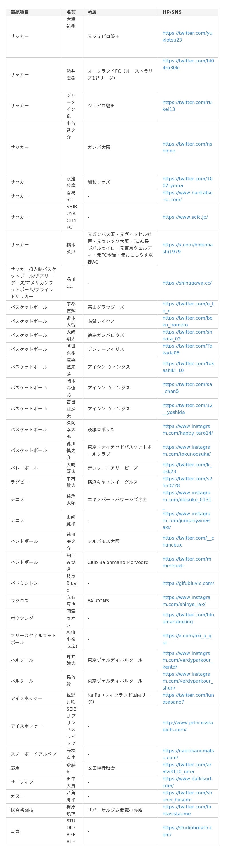 <BASE UP SPORTS サプライヤー契約一覧(現時点)>