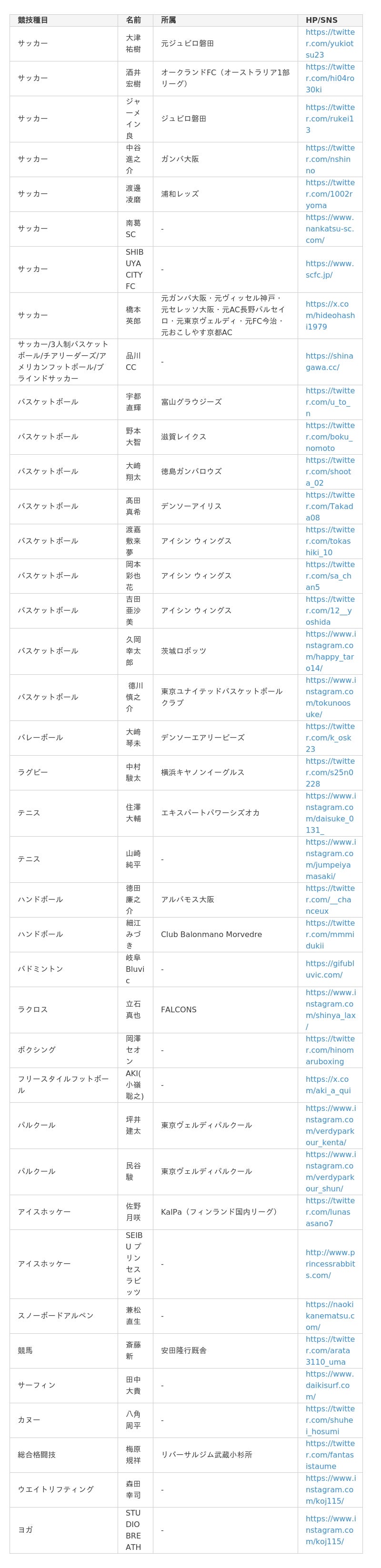 <BASE UP SPORTS サプライヤー契約一覧(現時点)>