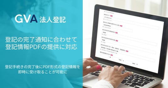 【25,000社導入】GVA 法人登記にて、登記手続きの完了通知タイミングで登記情報PDFの提供を開始。最新の登記内容を確認可能に。