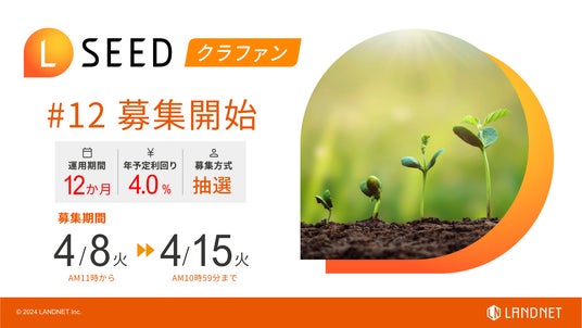 「人生100年時代」を見据え、企業理念に「最新のテクノロジーと独自のデータベースを活用し、不動産を流通・再生・運用し、世界を変える」を掲げる株式会社ランドネット(本社:東京都豊島区/代表取締役社長:榮 章博、証券コード:2991、以下ランドネット)は、不動産投資クラウドファンディング『LSEED(エルシード)#12』のファンド募集を、4月8日(火)より開始することをお知らせいたします。なお募集金額は3,746万円です。