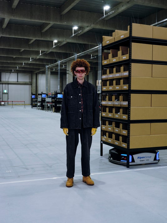 また今コレクションでは、愛知県稲沢市に2024年春に開設された、中京フルフィルメントセンターで撮影を実施。EC物流の西日本方面への旗艦倉庫となる同所で、ブランドコンセプトを体現したユーモアな撮影となりました。