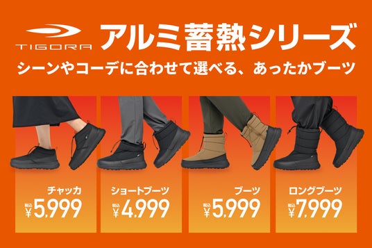 シーンやコーデに合わせて選べる、あったかブーツで冬支度!「TIGORA アルミ蓄熱シューズ」シリーズにショート・ロング丈が新たに追加!