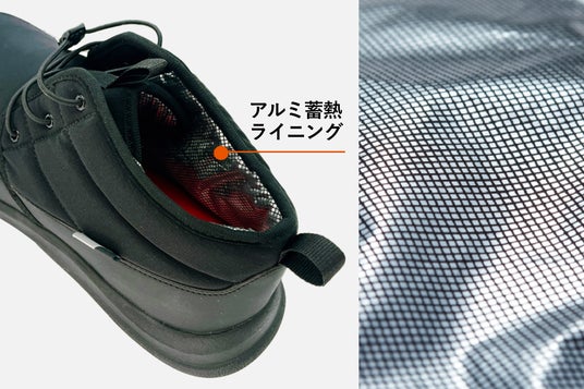 ブーツのインナーには、体が発する熱を反射することで、高い蓄熱効果を発揮するライニング(裏地)素材を採用。