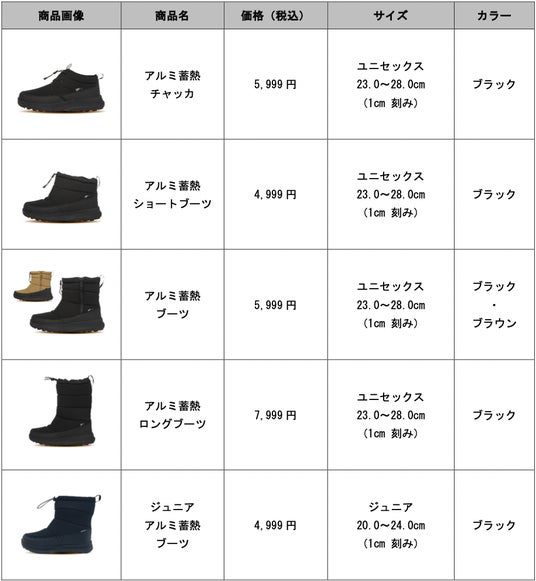 チャッカとミドルタイプのブーツで展開していた従来の「アルミ蓄熱シューズ」から、新たにロングブーツとショートブーツが追加されました。これにより、カジュアルな日常使いからアウトドアやレジャーシーンまで、シーンやコーディネートに応じて最適なブーツを選べるようになりました。ロングブーツはアウトドアや寒冷地での長時間の使用に、ショートブーツは日常使いや街歩きにぴったりです。