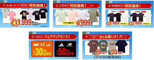 人気スポーツブランドのTシャツが決算特別価格の1,999円均一で大放出!!