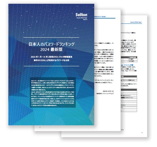 株式会社ソリトンシステムズ(代表取締役社長:鎌田 理、以下ソリトン)は、2024年1月から8月に発見された国内外276件の情報漏洩事件から、日本人が利用するパスワードを分析した結果をまとめた最新版「日本人のパスワードランキング2024」を公開いたします。