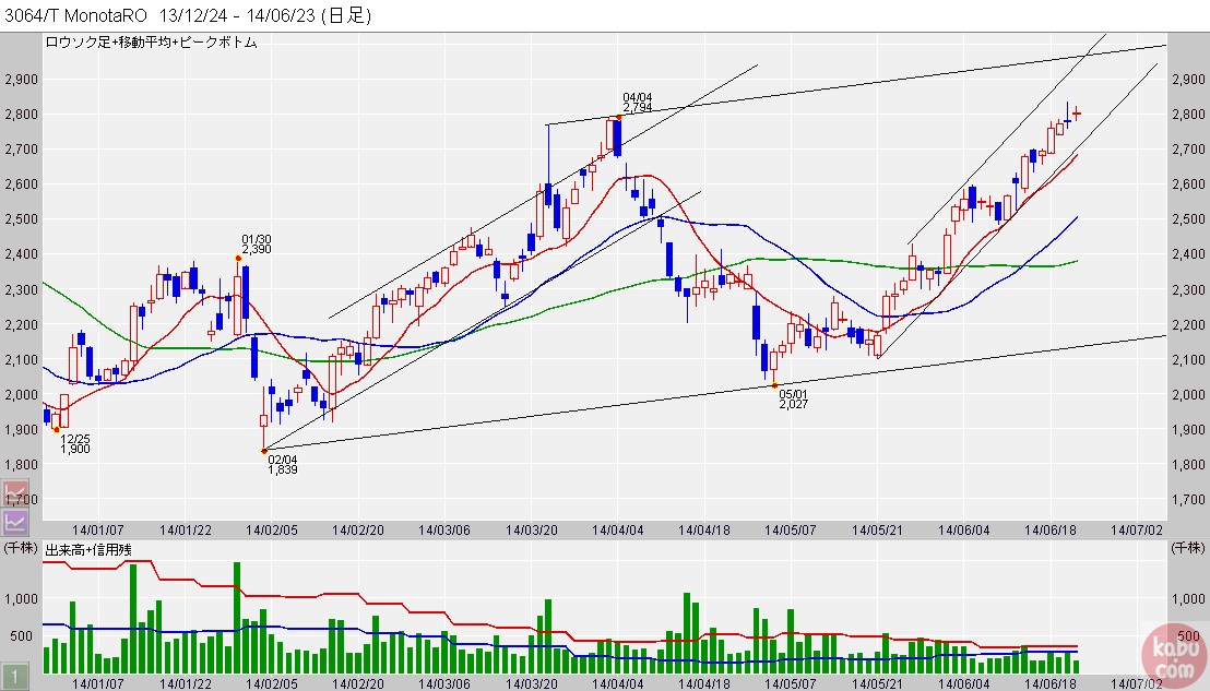 MonotaROの株を取引したことがありますか?みんかぶアセットプランナーに取引口座を連携すると売買履歴をチャート上にプロットし、自分の取引を視覚的に確認することができます。