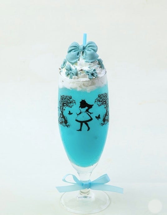 アリスの青いリボンをイメージしたチョコレートを飾り付けた華やかな一杯。好奇心旺盛のアリスのように、甘いだけでは表現できない多彩な味わいが秘められています。クリームの下に隠されたラズベリーの程よい酸味をご堪能ください。
