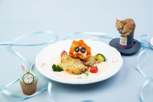 多くのお客様から愛された懐かしのメニューや人気の味が、全16品のアニバーサリーコースとして蘇ります!「チェシャ猫」「イモムシおじさん」「トランプ兵」「ハートの女王様」など、アリスの冒険を語るうえでは欠かせない不思議の国の住民たちが大集合の見た目も華やかなディナーです。