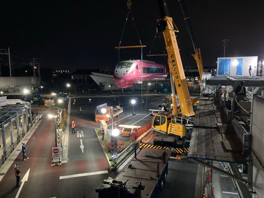今夏のオープンに向けて、特急サンダーバードとして使用していた廃車両(681系1両)の陸送並びに廃線高架上への吊り上げ及び設置を完了