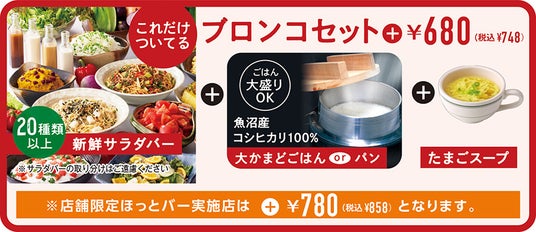 ※一部 ほっとバー実施店舗は、各プラス100円(税込110円)となります。