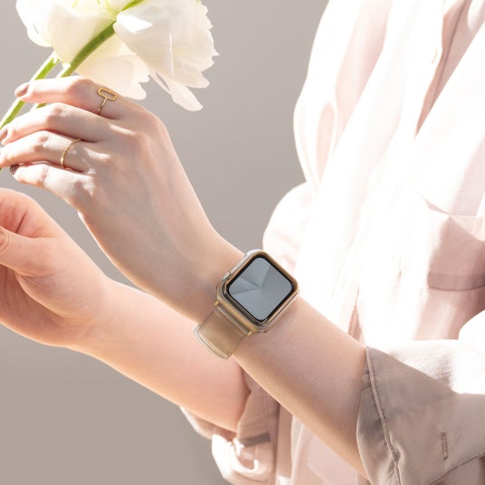 機能面では、ディスプレイ部分の傷が付きにくいふち高設計に加え、ポリカーボネート素材を採用。デイリーに着けたいApple Watchを清潔に保てるのもうれしいポイントです。
