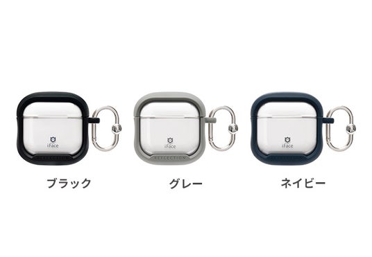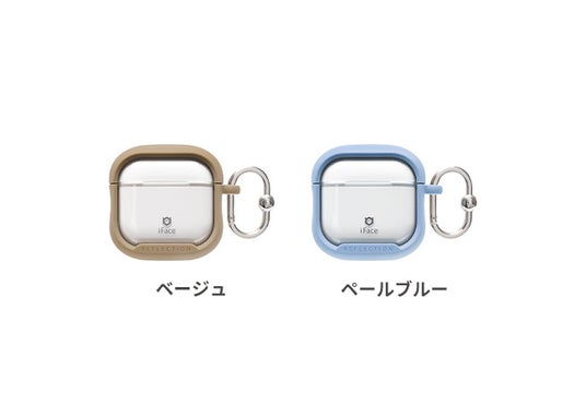 「Reflection(リフレクション)」シリーズからは、カラフルなふちとクリアの表面で、ケースを着けた状態でもAirPods本体が見えるデザインのケースが、5色登場します。衝撃に強いポリカーボネートとTPUのハイブリッド構造で大切なAirPodsを保護します。