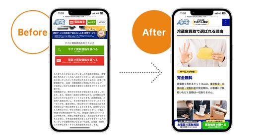 マーケットエンタープライズが運営する「高く売れるドットコム」では、家電や楽器、カメラやオーディオ、農機具や車など様々なアイテムの買取を行なっており、日頃から幅広いジャンルの不要品売却について、ご相談をいただいております。お客さまがアイテムのジャンルに合わせて売却検討しやすいよう、27の買取専門サイトを展開しておりますが、専門サイトは扱うジャンルに合わせたデザイン設計がされており、デザインの統一感がありませんでした。そのため、お客さまからは「どこから申し込めばいいかわからない」「買取の流れがわかりにくい」といった操作性に関する声をいただいておりました。そこで、大掃除など不要品の処分ニーズが高まる年末に、お客さまの利便性を向上させるべく、「高く売れるドットコム」内の買取専門サイトのうち24サイトのデザインを一新いたしました。なお、今回のリニューアルは改修・運用を自社で行なったことにより、従前に比べ、改修コストは1/5、運用コストは1/3の削減を達成しました。