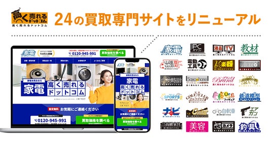 株式会社マーケットエンタープライズ(東京都中央区、代表取締役社長:小林 泰士、東証プライム・証券コード3135、以下「マーケットエンタープライズ」)が運営する「高く売れるドットコム」は、2024年12月23日(月)に、24の買取専門サイトをリニューアルしたことをお知らせいたします。この取組によって、顧客満足度向上はもちろん、売上拡大に努めてまいります。