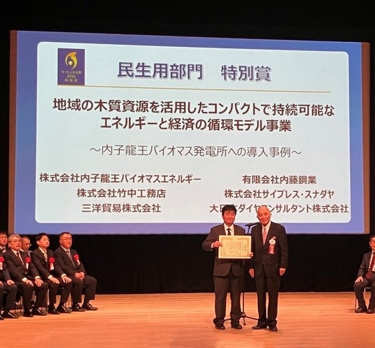 三洋貿易株式会社(本社:東京都千代田区、代表取締役社長:新谷正伸、以下「三洋貿易」)が、事業者のひとつとして参画している「内子龍王バイオマス発電所」が、「コージェネ大賞2024民生用部門特別賞」を受賞しました。