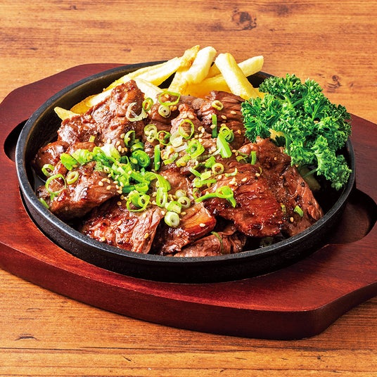 チムニーの手がける焼肉業態【焼肉 牛星】監修のソースを使用し、シェアしやすいカットステーキに仕上げました。