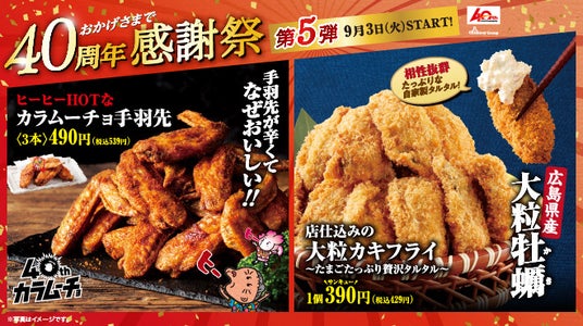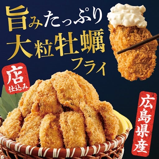 たまごたっぷりのタルタルを贅沢に使用した、毎年人気の広島県産大粒カキフライを今年も販売開始。40t記念カラムーチョコラボやごちそうさまプロジェクトとコラボした日本の養殖・漁業応援メニューなど全11品