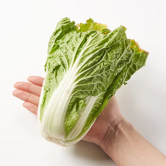 白菜は、生育初期は葉を地面に広げ、葉の枚数が増えると中心の葉が立ち上がり、内側に巻かれて結球します。 今季は生育期間中の昨年秋に暑い日が長く続いた影響と、その後の急激な温度変化により、生育バランスが崩れ、例年より巻きがあまい白菜が出てきてしまいました。 食味は正規品と変わらずおいしいものの、こうした白菜はサイズや重量が規格外となって一般には流通できないため、「おたすけOisix」商品として販売します。