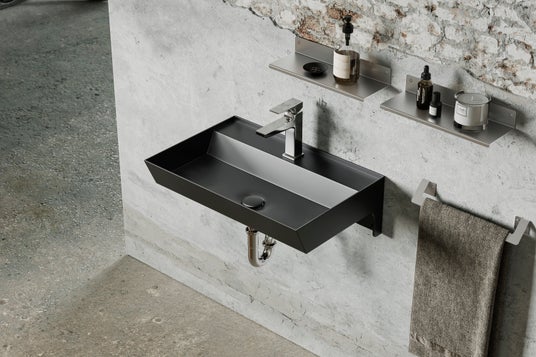肉厚なステンレスを使用した洗面ボウル。本体と壁固定用のブラケットを一体化することによりすっきりと見え、施工性にも配慮しました。パーツの継ぎ目も目立たず、日本の技術で細部の美しさにまでこだわった洗面ボウルです。