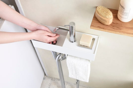 世界最小クラスのコンパクトな手洗器。神社や仏閣などで身を清める手水鉢のように、大切な場所へ入る前に手を洗う小さな器という意味でネーミングしました。住宅の玄関や廊下から、店舗、公共施設まで、さまざまな場所に設置できます。