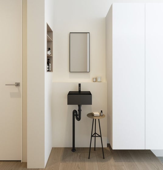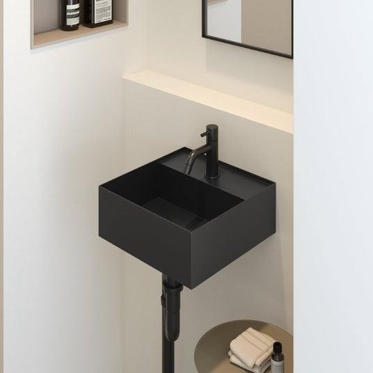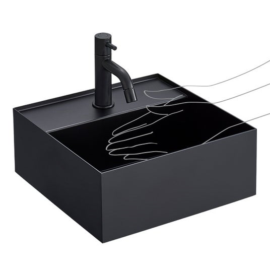 《ディプト》は、省スペースなスクエア型の洗面ボウルです。幅と奥行き共に300mmというコンパクトサイズでありながら、使い勝手の良さを追求し、しっかりと手が洗える深さを確保しました。カラーは、あらゆる空間に調和するホワイトとブラックの2色からお選びいただけます。