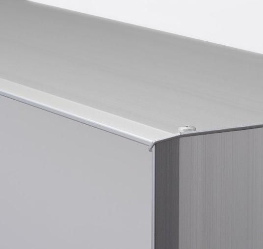 1.シャープなエッジ庇の角の接合部は、45度にカットして突き合わせる”留め加工”を採用しました。これにより、細部までシャープな印象に仕上げています。