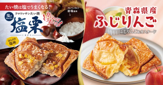 【秋の大人気限定商品】 クロワッサンたい焼 『塩栗』 ・ 『ふじりんご&カスタード』 薄皮たい焼 『甘栗あん』 の3種を、10/18(金)より同時発売!