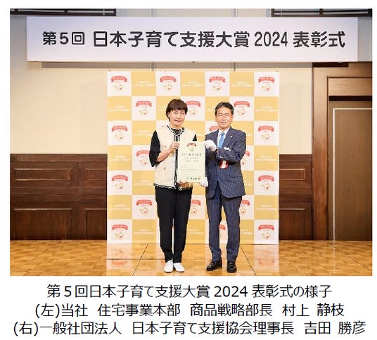 本取組みは、普段目に入りにくい場所に保管されている防災グッズや備品を普段から利用する動線上の一部に保管することで、有事の際にすぐ対応できるように意図した取組みです。加えて、普段から防災グッズを目にする子どもたちも防災に対する関心が生まれ、家族のコミュニケーションにつながることや、防災意識向上に寄与することが評価され、日本子育て支援協会が主催する、第5回日本子育て支援大賞を受賞しました。今後も当社は、災害に強い住まいをお届けすることに加え、住む人々の防災意識を醸成する取組みを拡大してまいります。
