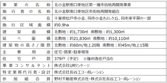 北小金駅南口東地区市街地再開発組合(理事長:鈴木 悦朗 以下、本組合)と本組合に参加組合員として参画している野村不動産株式会社(本社:東京都新宿区/代表取締役社長:松尾 大作)、株式会社長谷工コーポレーション(本社:東京都港区/代表取締役社長:熊野 聡)は、千葉県松戸市にて進めております「北小金駅南口東地区第一種市街地再開発事業(以下、本事業)」において、2025年2月13日に権利変換計画について千葉県知事の認可を受けたことをお知らせいたします。