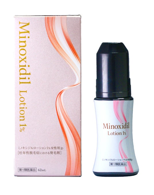 ■「ミノキシジルローション1%女性用jp」 2つの特長1.壮年期の脱毛症状※1を改善する※2「ミノキシジル」を配合