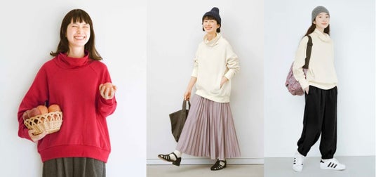 裏起毛素材の中でも、綿とポリエステルを絶妙なバランスで混紡した、暖かくふわっと軽く仕上げた素材を使った服のこと。洗濯機で洗えて、お手入れらくちんなところもうれしいポイントです。