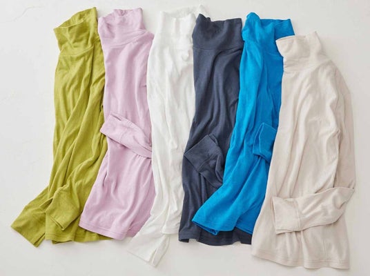 毛布のように暖かく軽い「かるホカ」シリーズからハイネックトップスとカーディガンが登場