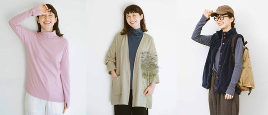 毛布のように暖かく軽い「かるホカ」シリーズの新作ハイネックトップスやカーディガン、kazumiさんとつくった「2-WAYニットカーディガン」などがフェリシモ「frauglatt」から新登場