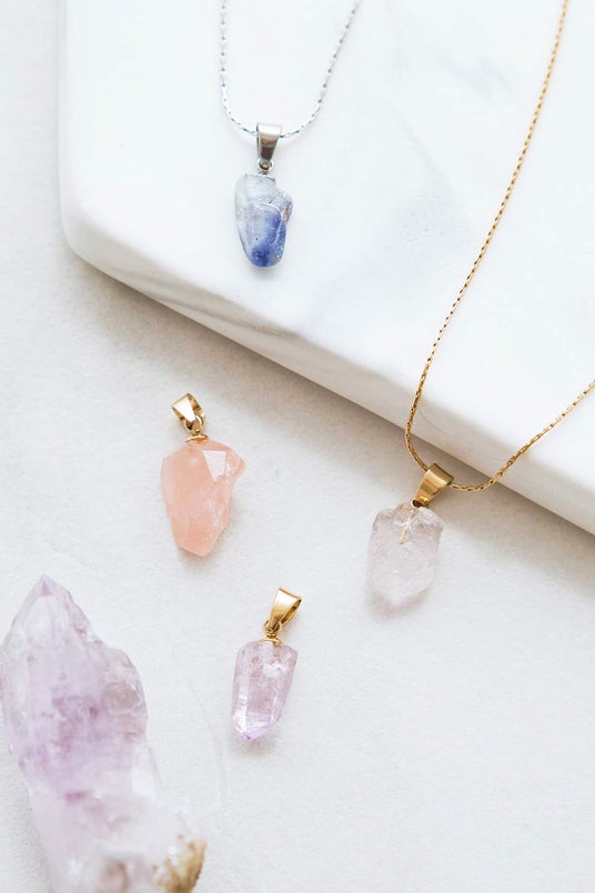 鉱石の結晶そのものの形を生かしたネックレストップです。鉱石そのままの形や個性を生かすことで何万年も経て形作られた結晶そのもののナチュラルな美しさと神秘を感じます。ナチュラルな輝きと小さめサイズにこだわり、さりげなく使いやすいネックレストップに仕上げています。チェーンにセットすれば、アクセサリーとしてお守りのように身に着けられます。